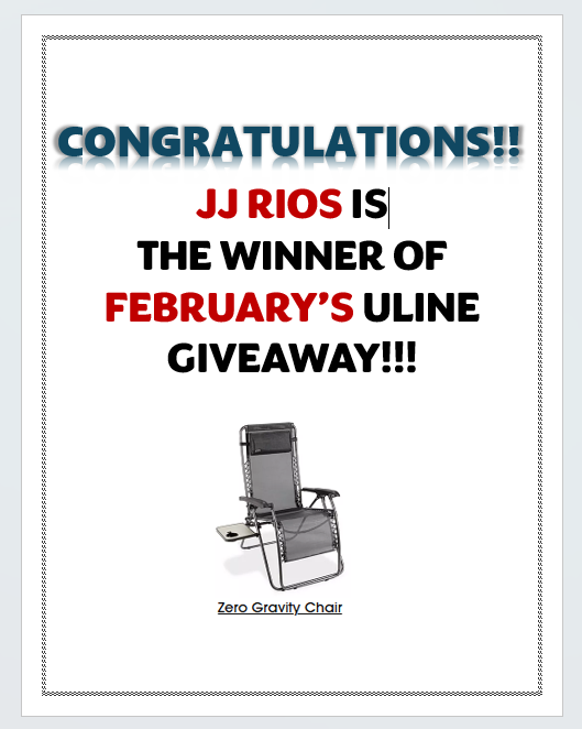 ——— ULINE MONTHLY WINNER——-